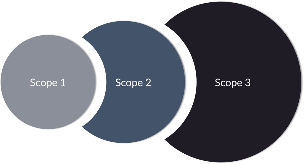 Die Emissionsverantwortung von Unternehmen ist in drei Scopes gegliedert. Jeder Scope erweitert den adressierbaren Markt für CO₂-Zertifikate.