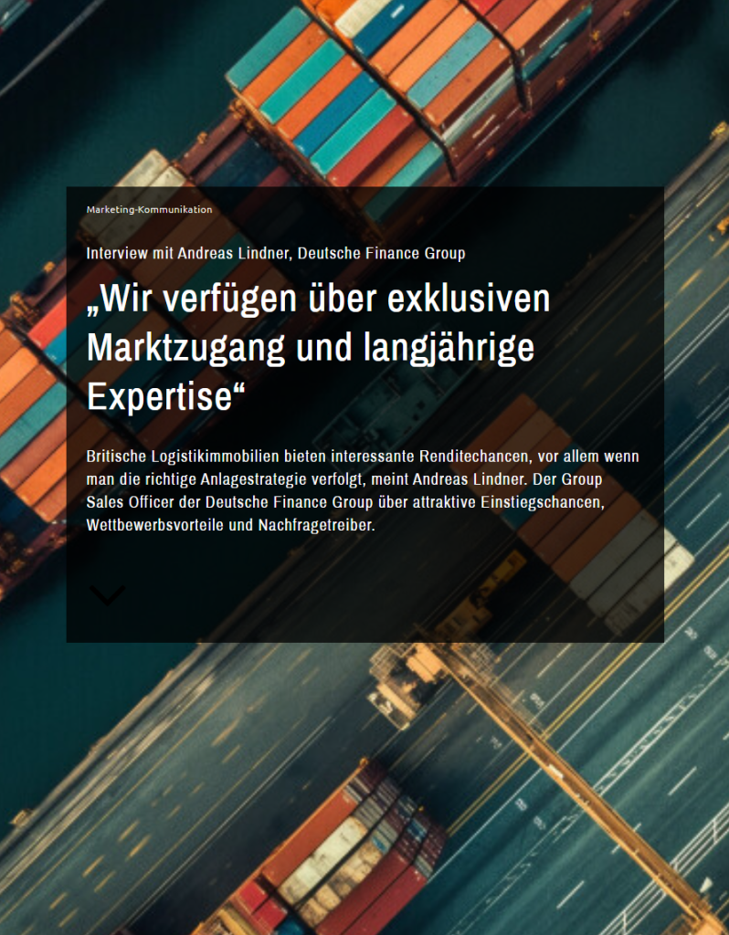 Britische Logistikimmobilien bieten interessante Renditechancen, vor allem wenn man die richtige Anlagestrategie verfolgt, meint Andreas Lindner. Der Group Sales Officer der Deutsche Finance Group über attraktive Einstiegschancen, Wettbewerbsvorteile und Nachfragetreiber.